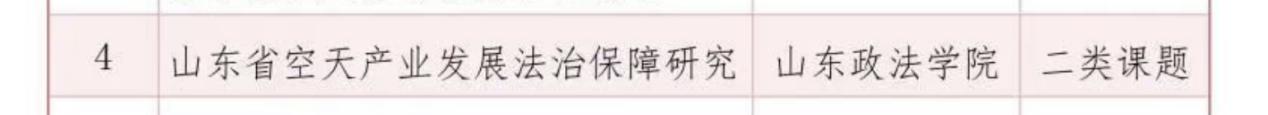 年度法治山东建设理论与实务研究立项课题名单,刑事司法学院王玲博士主持的《山东省空天产业发展法治保障研究》获批立项。