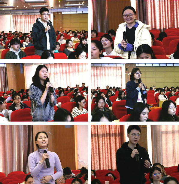 互动交流环节,同学们围绕备考节奏把控、学硕与法硕的抉择、岗位精准定位等现实困惑踊跃提问。马凤春结合往届毕业生的典型案例逐一给予针对性解答,现场氛围热烈。