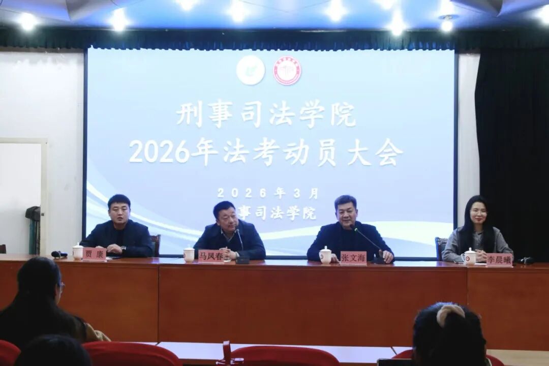 为助力2023级学子科学制定备考策略,明晰职业发展蓝图,3月12日下午,刑事司法学院在图书馆五楼学术报告厅举办2026年法考动员大会。学院院长马凤春担任主讲人,院党委副书记张文海,2023级辅导员贾康、李晨曦出席会议,2023级全体本科生参加。