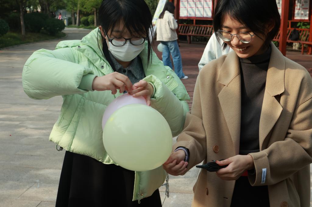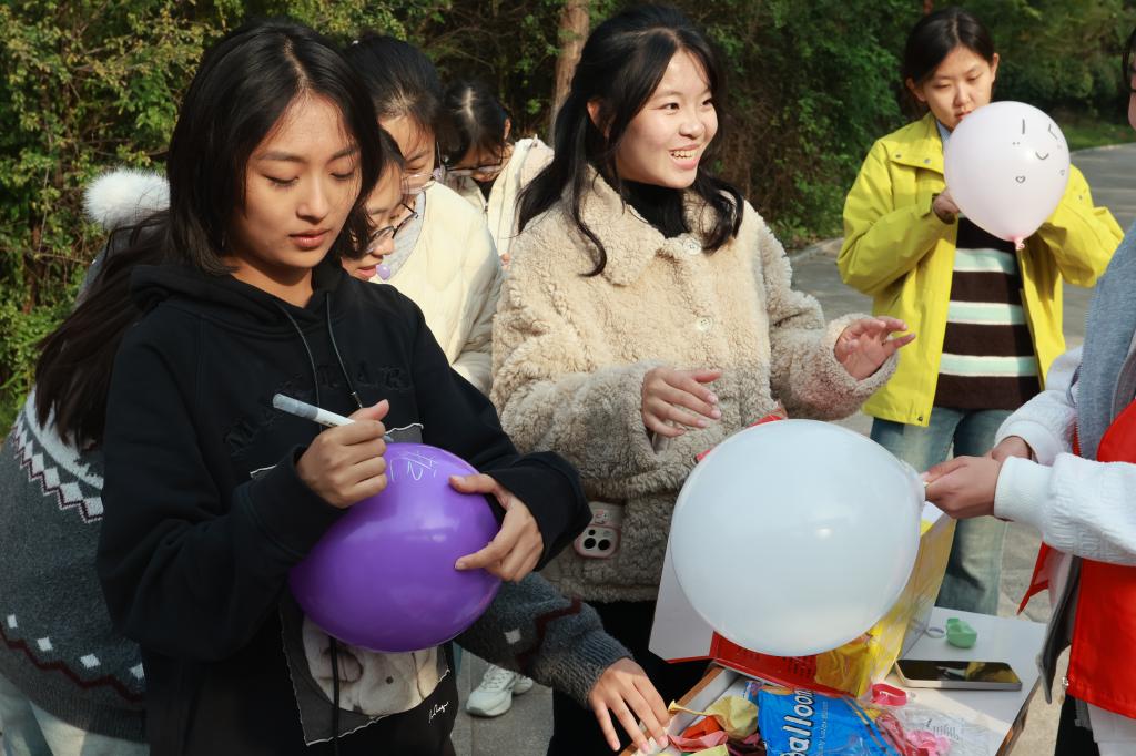 “情绪解压气球”环节里,同学们将近期的烦恼与焦虑写在气球上,随着一脚脚轻快的踩踏,气球爆裂声此起彼伏,驱赶了紧锁的眉头与紧张的心情,带来了轻松愉快的笑声。