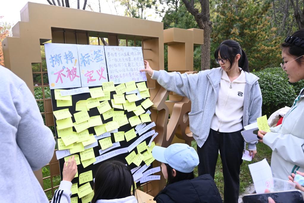 展示板前,同学们勇敢上前,撕掉那些不应强加于人的恶意标签,随后在新的便签纸上写下积极正向的情绪与期许,重新贴回板面。每一次撕除都是对刻板印象的宣战,每一张便签都是对“不被定义”的坚守。