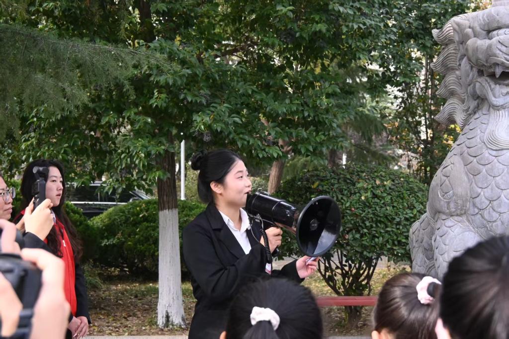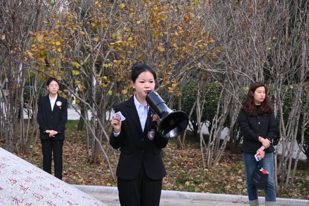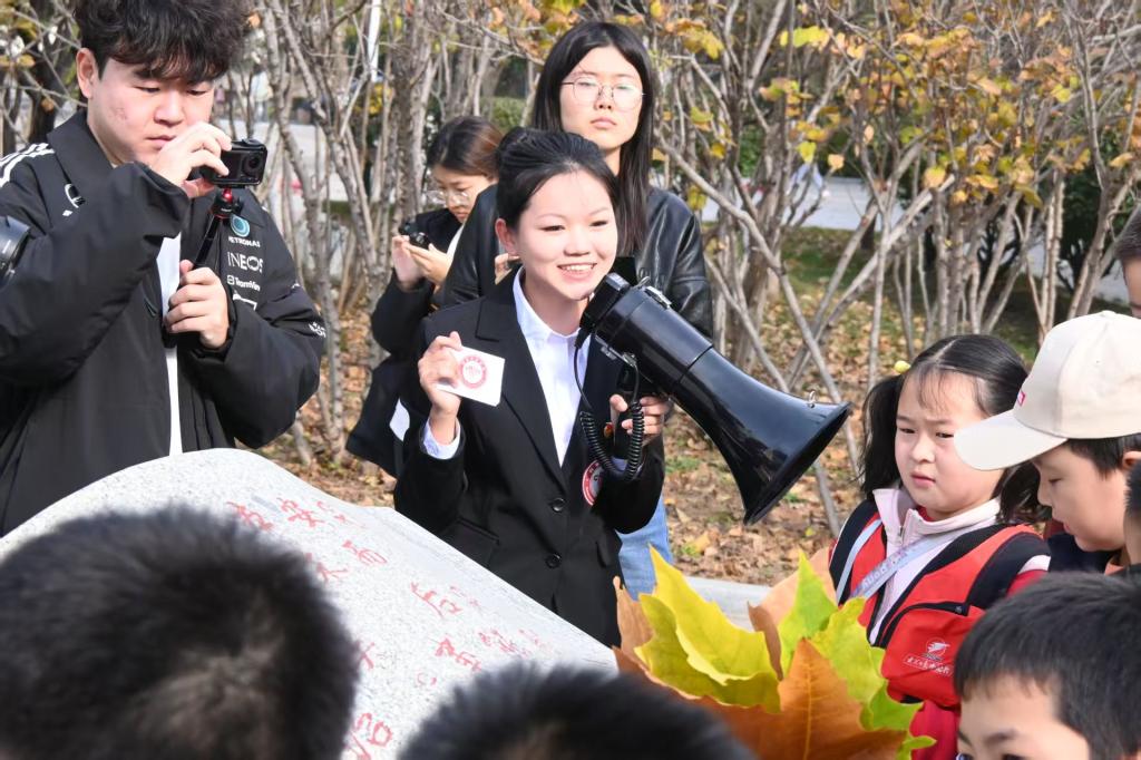 在志愿者的有序引导下,同学们自南门出发,循着红色足迹与法治脉络,先后探访茂岭山战场遗址党史教育基地、图书馆人权广场、獬豸雕塑、法治广场、双拥公园、民法典公园、“法正民安”大鼎及“法”字雕塑等核心场所。大学生法治辅导员们以详实史实为基、以鲜活案例为媒,深入浅出阐释红色故事与法治内涵,让红色基因与法治精神直抵人心。同学们全程专注聆听、潜心感悟,踊跃参与互动问答,现场学习氛围浓厚。