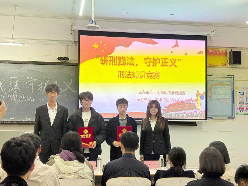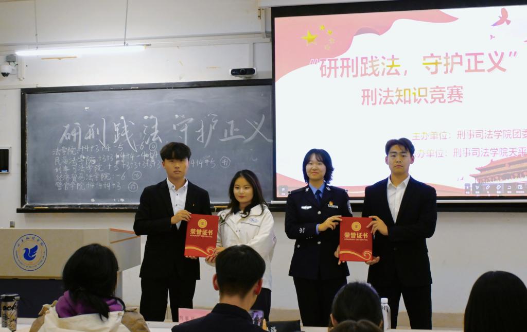 为丰富校园法治文化生活,搭建刑法学习交流平台,引导青年学子夯实专业基础、提升法治素养,11月13日,刑事司法学院在知行楼304教室举办“研刑践法,守护正义”刑法知识竞赛。来自刑事司法学院、法学院、民商法学院、经济贸易法学院及警官学院的学生踊跃参与,以赛会友、以研促学,共同呈现了一场精彩的法治思维交锋。