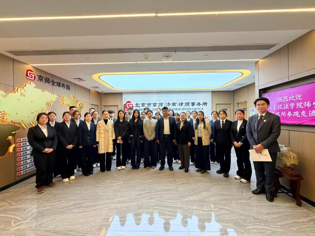 为深化法学专业理论与法律实务的融合,帮助学子明晰职业发展方向,提升专业实践认知,11月27日,刑事司法学院团委负责人秦增忠、辅导员李晨曦带领二十余名学子走进北京市京师(济南)律师事务所开展参观交流活动。