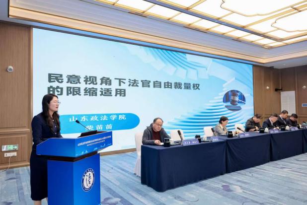 会议第二阶段,围绕“刑事审前程序理论与实践问题研究”、“刑事审判程序理论与实践问题研究”、“刑事证据制度理论与实践研究”、“学科交叉视域下的刑事诉讼法学研究”四个环节展开理论研讨,杨晓静教授在第二环节作为与谈人发言、申世涛教授在第三环节作为与谈人发言、柴苗苗老师在第二环节作题为《民意视角下法官自由裁量权的限缩适用》的主旨报告。